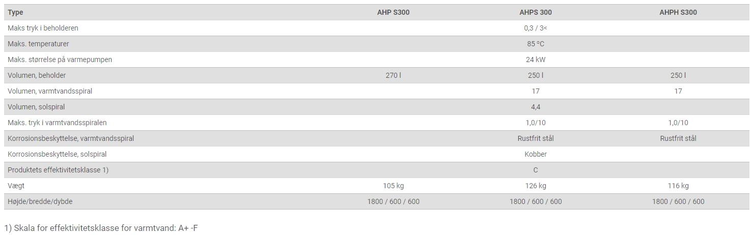 AHPS har både indbygget tappespiral til varmtvandsproduktion og solspiral. AHPS og AHPH kan udvides med AHP til det ønskede systemvolumen.