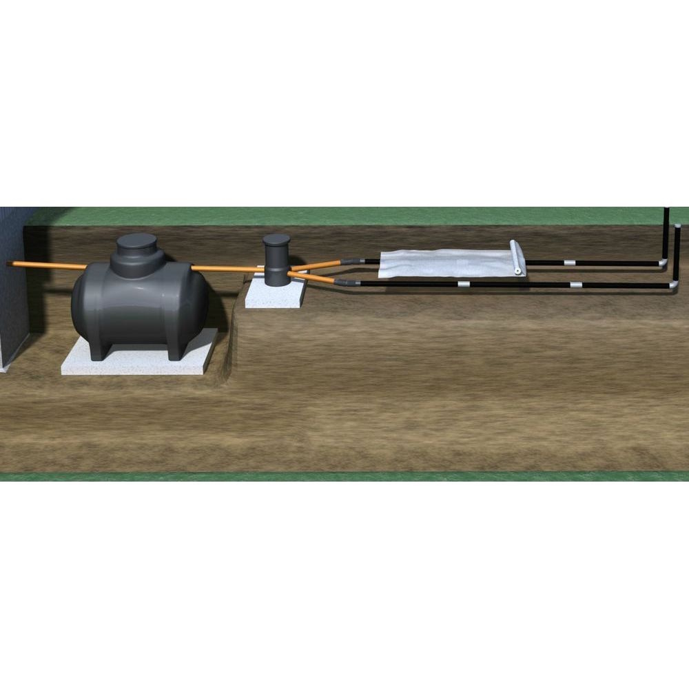 Pakken består af fordelerbrønd, ventilationsrør, sprederrør, fleksible bøjninger eller bøjninger, muffer, ventilationshætter og fiberdug. Eksklusive slamudskiller.