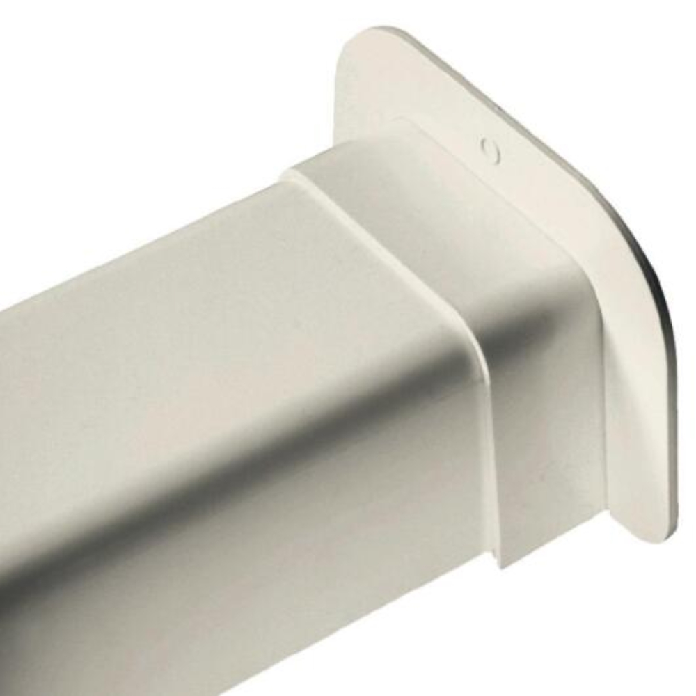 Hvid vægafdækning i PVC til tætning af rør- eller kanalføring gennem vægge. Temperaturbestandig fra –20°C til +70°C.