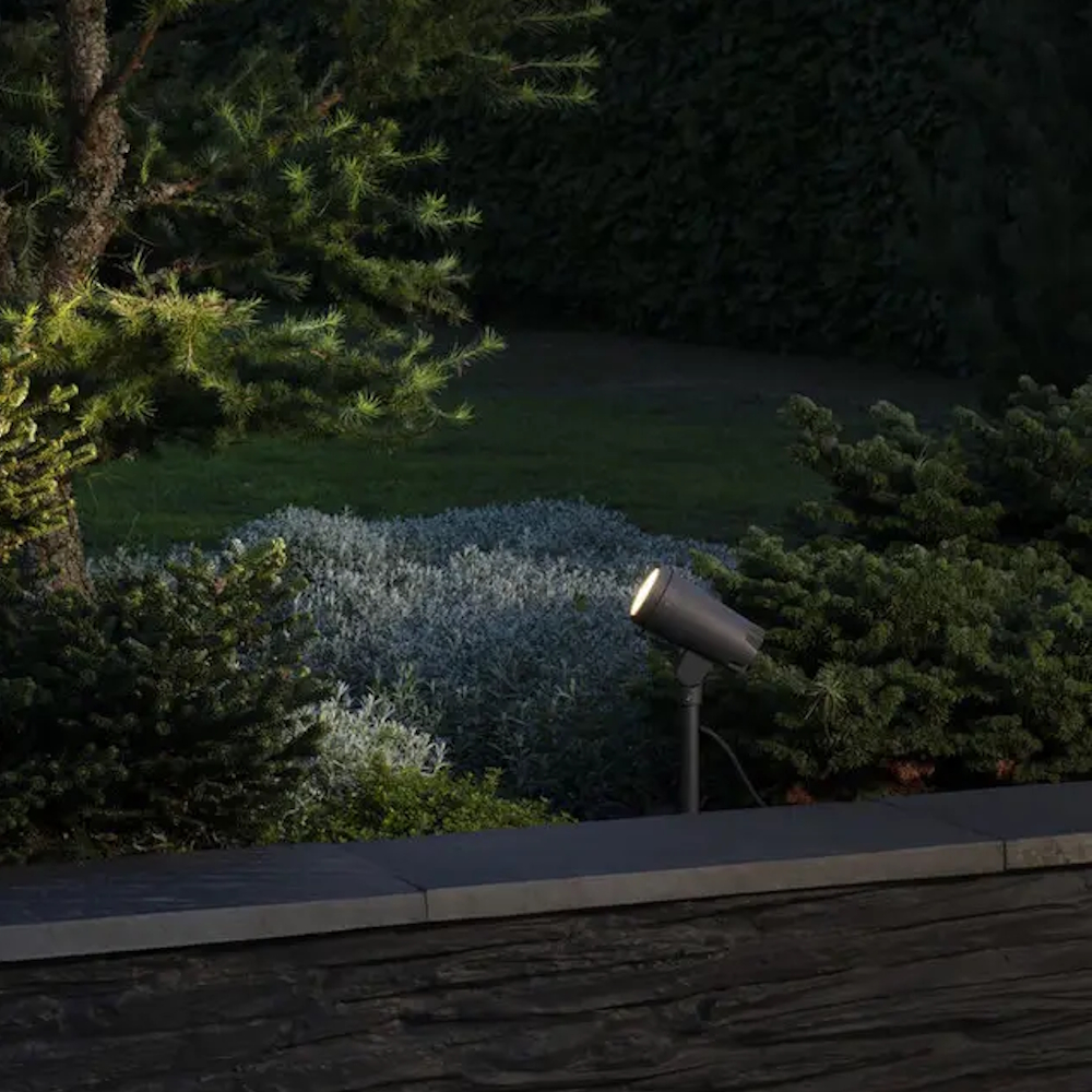 Andria LED 12V justerbar lampe inklusive transformer. LED-Spot Konstsmide Andria LED Justerbar er en praktisk udendørsbelysning med retningsbestemt lys, der leveres med transformer og LED-lyskilde.