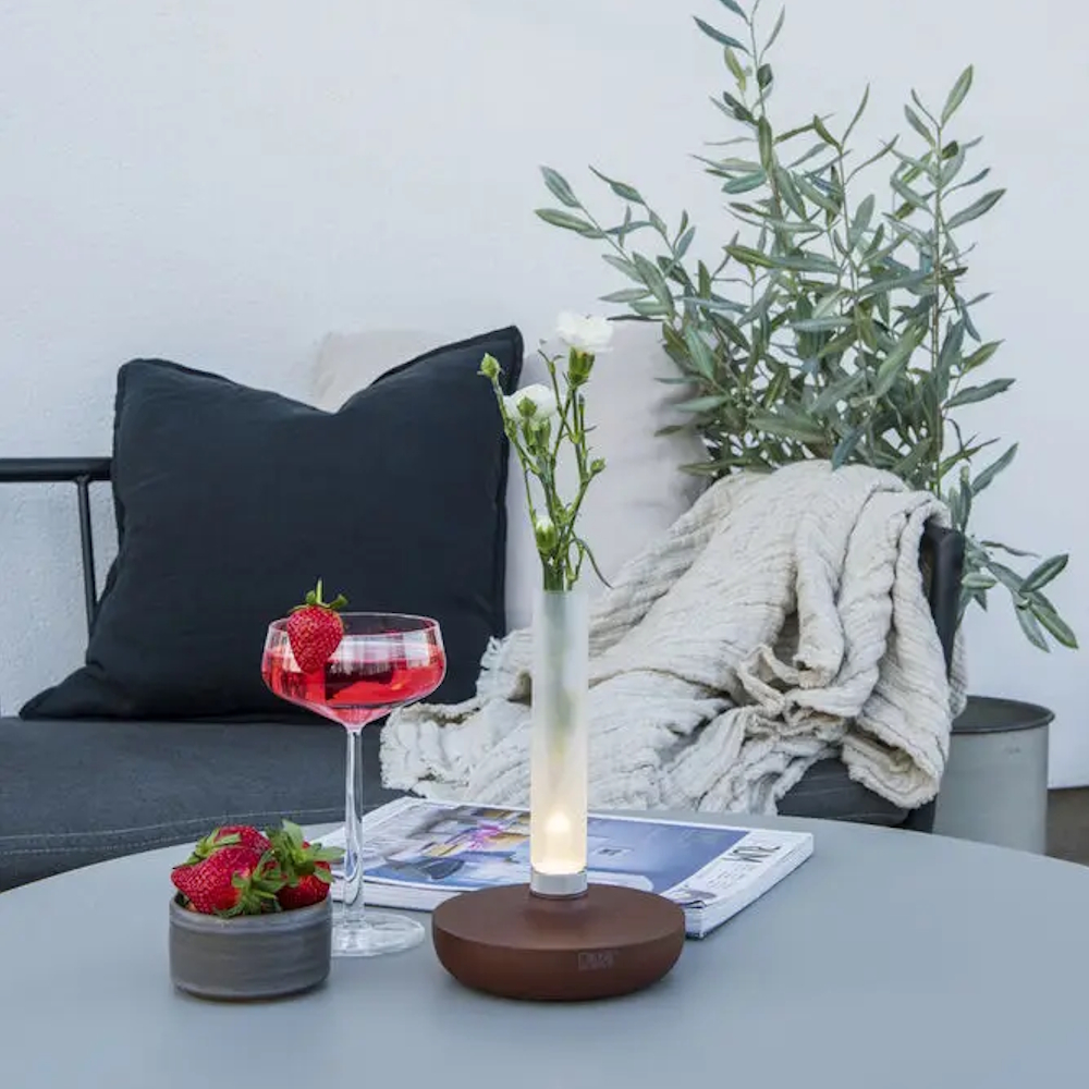 Biarritz er en elegant, genopladelig loungelampe formet som en vase med justerbar belysning, hvor du kan vælge farvetemperaturen 1800/2700/4000K og er dæmpbar. Pynt din borddækning med blomster og hyggeligt lys. Oplades via USB og har en batterilevetid på cirka 9 timer ved fuld lysstyrke. Rustlakeret rustfrit stål.