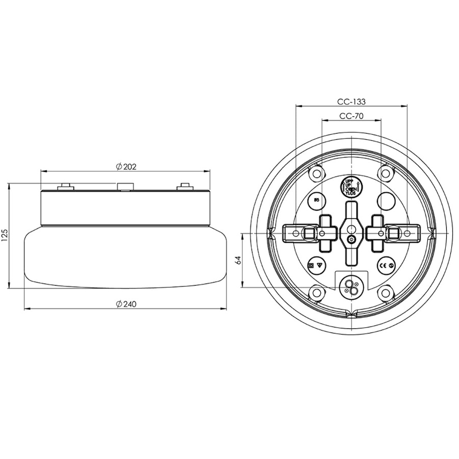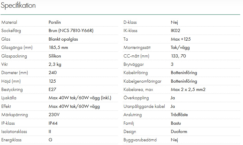 Classic har en keramisk sockel och blank opal kupa. Placeras i tak eller på vägg i bastu.