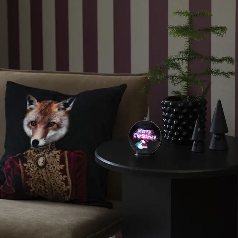 Holoball Juledekoration i form af en julekugle med film på den vinkende julemand. Farvede LED'er og drevet af et USB-kabel. Kan hænges op eller placeres på bordet. Timerfunktion på 2 timer. Diameter 10cm.