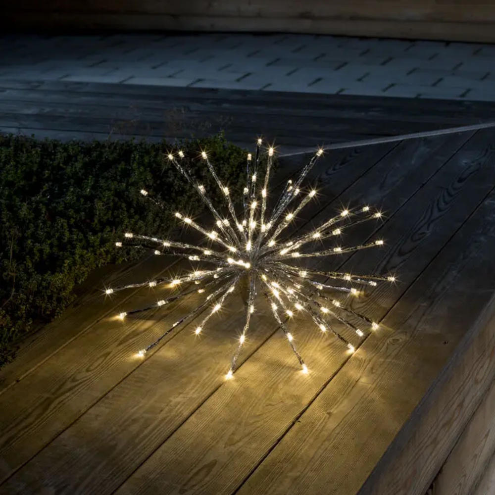 Dekorativ kugle Spröt fra Gnosjö Konstsmide, 40 cm med 120 varme hvide LED-lys, 5m tilslutningskabel. Til udendørs brug.