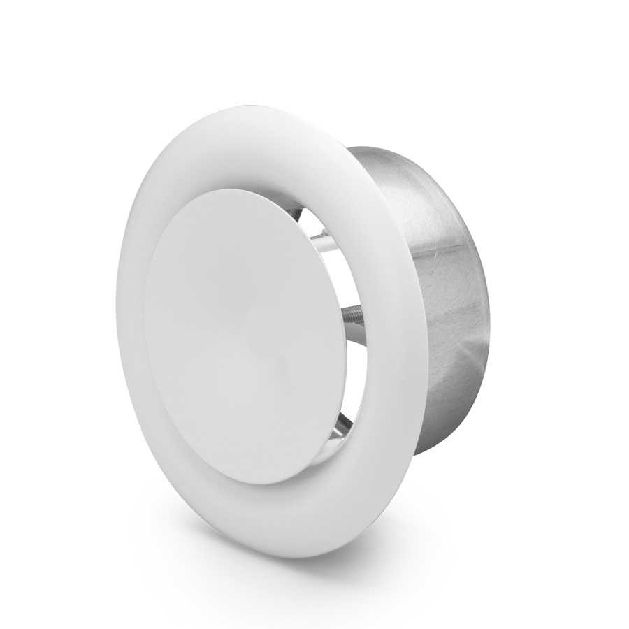 Tilluftsdon i vitlackerad stålplåt med reglerbar inställning av luftflödet, Ø125mm.