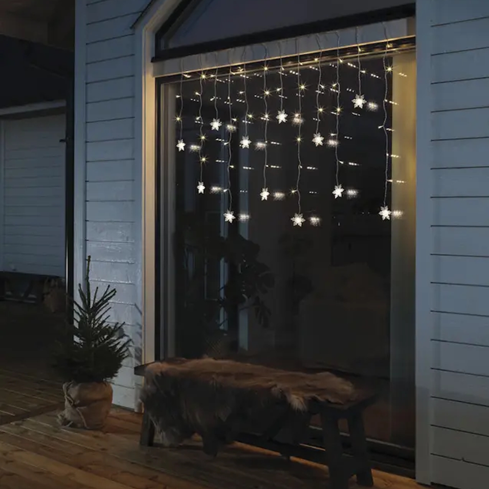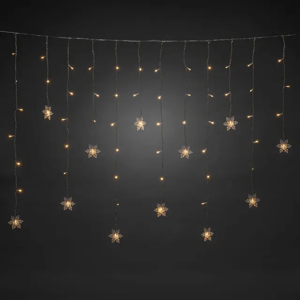Dekorer dit vindue med et funklende lysgardin, hvor 12 varm hvide snefnug spreder et hyggeligt skær. [Energiklass F]