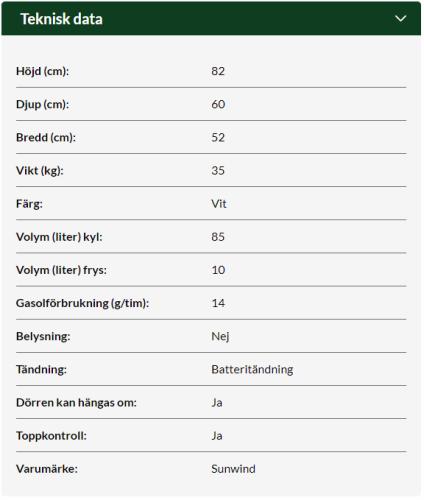 Ventus 100 er et kompakt og praktiskt gas køleskab, egnet til hytter med begrænset plads. Skabet har også en 10 liters køleboks.
