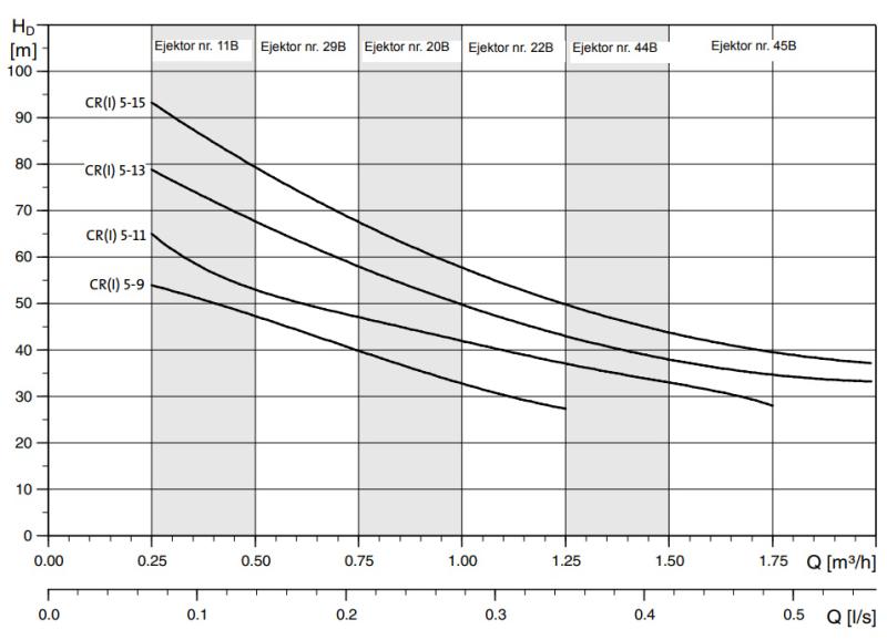 CR(I) DW ejektorpumpar används för ejektorpumpning i mindre vattenförsörjningssystem där vatten pumpas upp från ned till 90 meters djup.