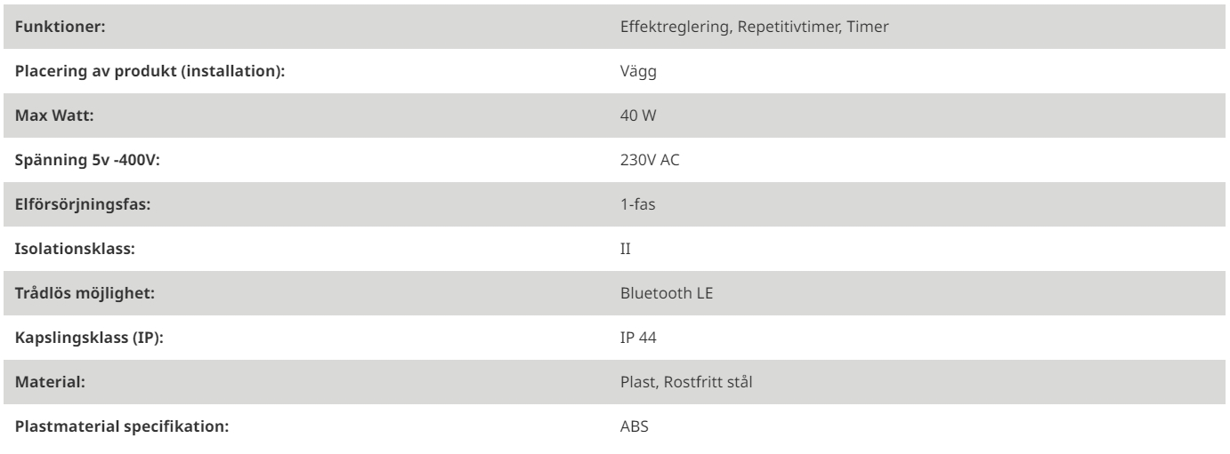 Flex I, 4 armar 560 mm individuellt svängbara. Momento II-timer med möjlighet till app-styrning. 40 W. Rostfritt stål.