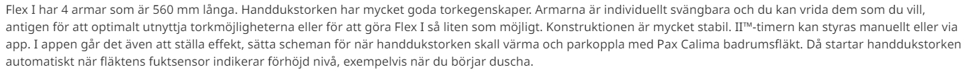 Elhanddukstork, Flex I med 4 svängbara armar. Dold elanslutning, B560 X H510 X D112 mm. Momento II™-timer med möjlighet till appstyrning. 40W, Rostfritt stål.