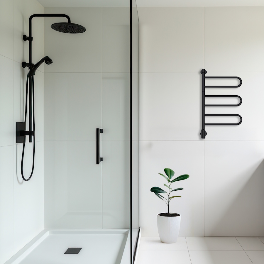 Flex U i mattsvart utförande, har 3 armar som är 450 mm långa. Handdukstorken har mycket goda torkegenskaper. De individuellt svängbara U-formade armarna i 180 grader gör så att handdukarna hänger luftigt ner det behövs. Flex U är tillverkad i lackat stål och effekten är 41W. Handdukstorken går att montera höger eller vänsterställd. Modellen levereras komplett med Momento II-fäste för dolt el-montage placerat nedtill.