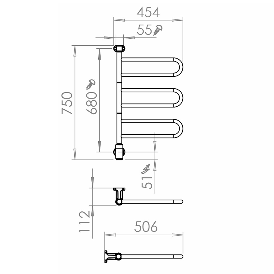 Handdukstork Pax Flex U 3/450 Momento II svart