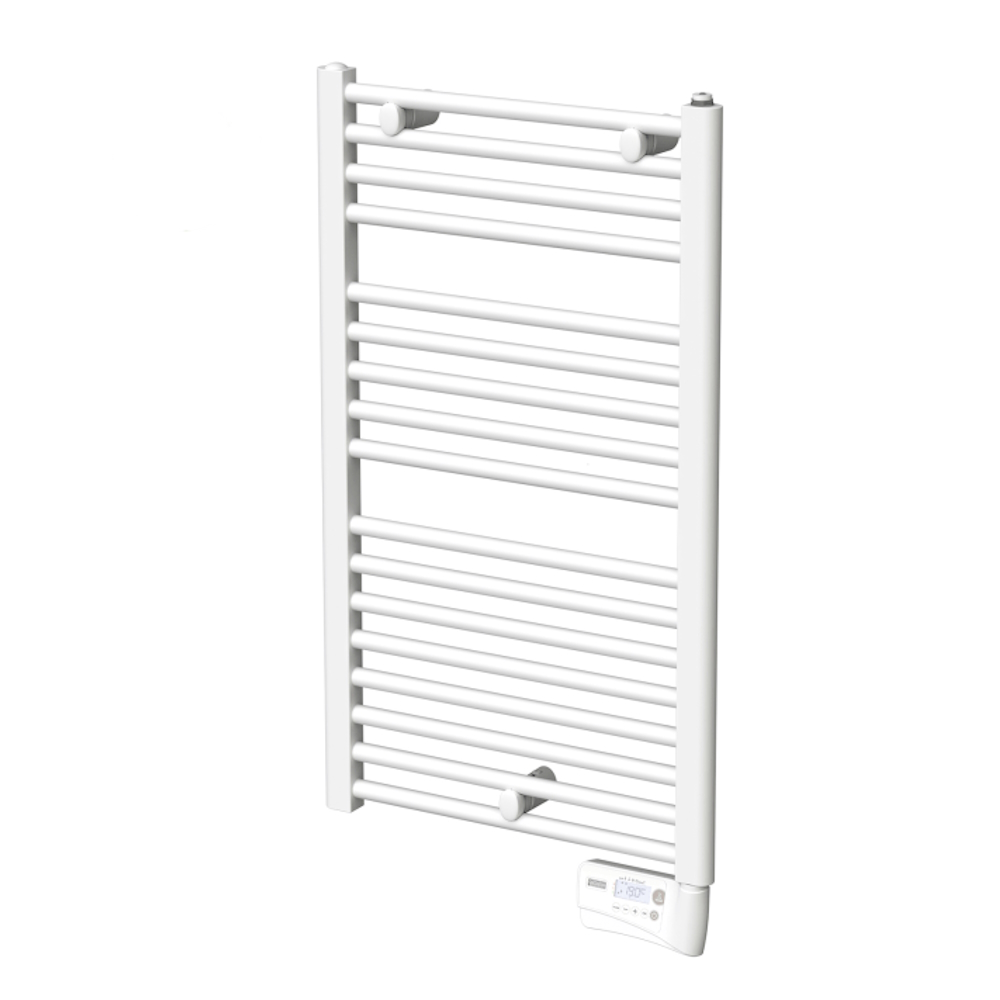 Elektrisk væskefyldt håndklædeholder med lige sidekanaler, D-formede lodrette rør inklusive elektronisk vægmonteret termostat.