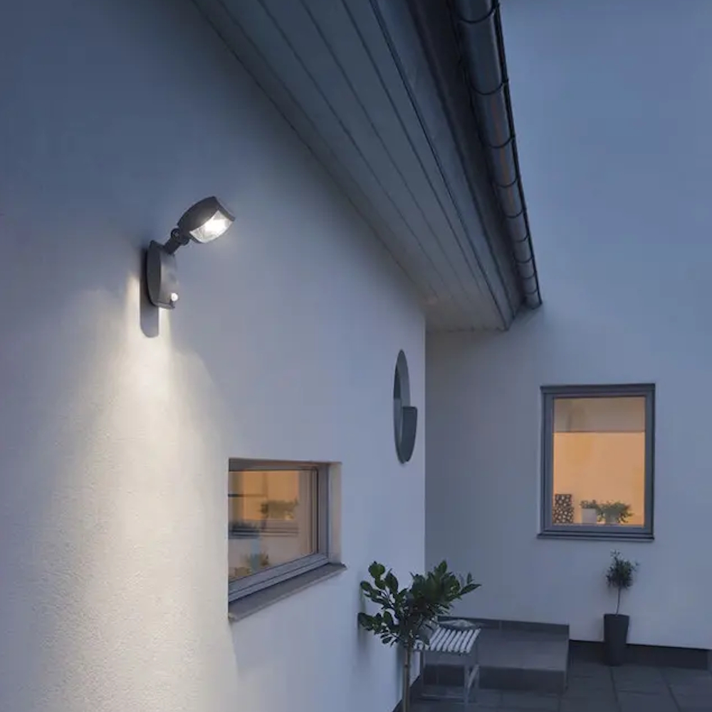 Latina facadebelysning i antracitgrå malet aluminium og klart akrylglas med 1 stk. 3W LED og bevægelsessensor. [Energiklass F]