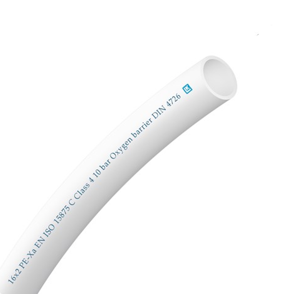 PE-Xa rør med iltdiffusionsbarriere til gulvvarmesystemer. Maks. driftstryk 6 bar (gælder for 12 x 2,0). Maks. kontinuerlig driftstemperatur 70 ºC (kortvarig belastning 95 ºC). Rørmål 12 x 2,0 rørafstand c/c 150 mm, ca. 7 m/m².