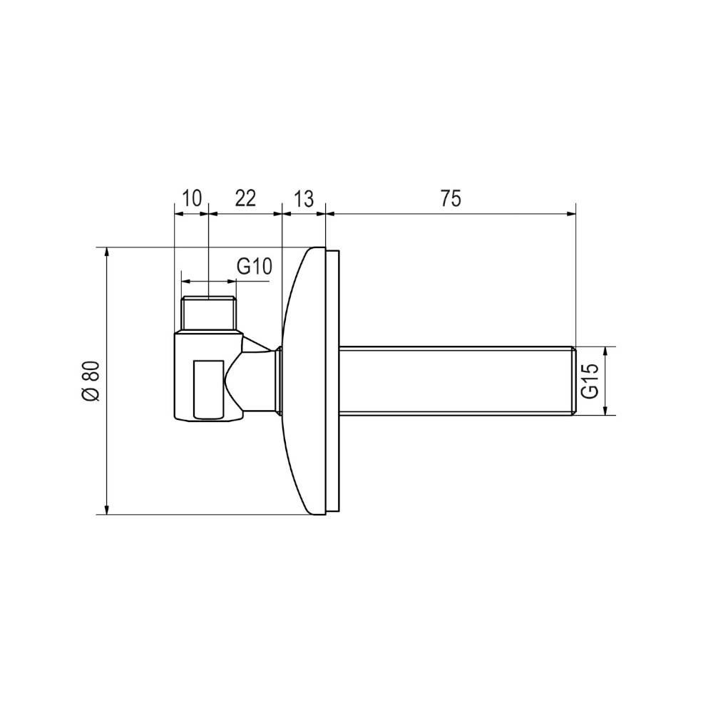 Til alle LK Vægdåser. Leveres med forkromet vægskive diameter 80 mm. Udvendig G15 til tilslutning til vægdåsens vinkelnippel, 75 mm lang. Ved vinklen, et udvendigt G10 gevind til tilslutning af f.eks. halvkobling eller tilslutningsslange med flydende møtrik og flad pakning.