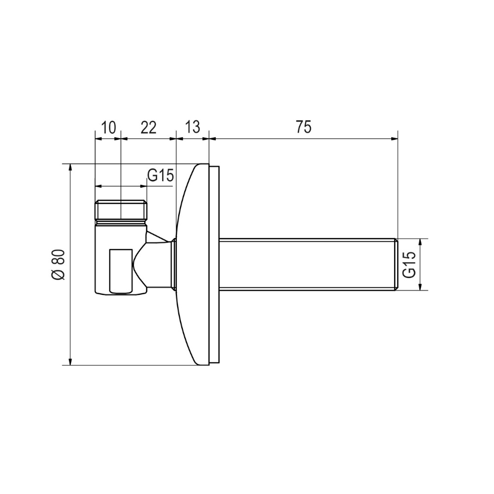 Til alle LK Vægdåser. Leveres med forkromet vægskive diameter 80 mm. Udvendig G15 til tilslutning til vægdåsens vinkelnippel, 75 mm lang. Ved vinklen, et udvendigt G15 gevind til tilslutning af f.eks. halvkobling eller tilslutningsslange med flydende møtrik og flad pakning.