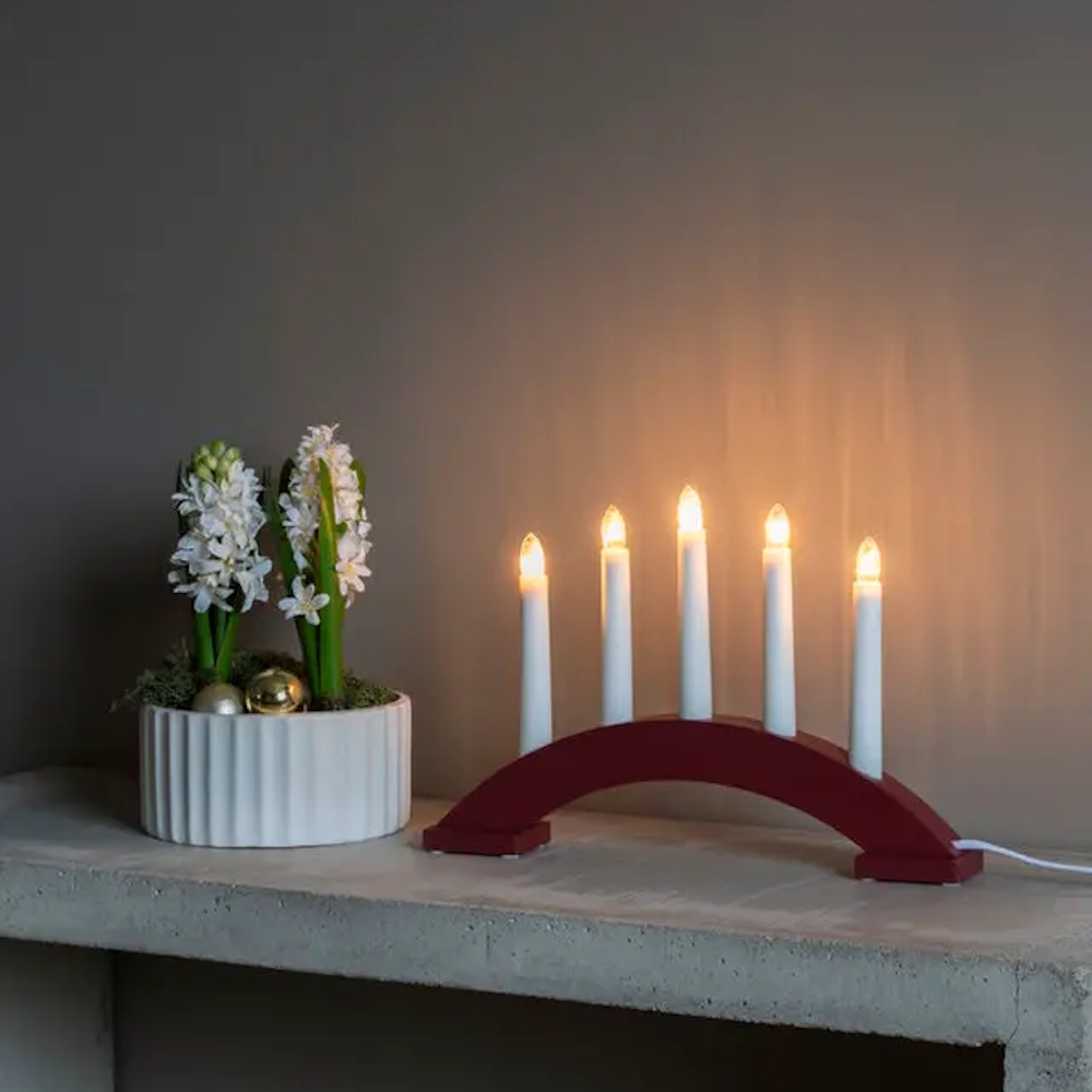 Elegant adventsstage i lakeret træ, der skaber en varm og indbydende følelse i vintermørket. Med 5 lys og et klassisk design bliver den en tidløs juledekoration, der spreder lys og hygge år efter år.