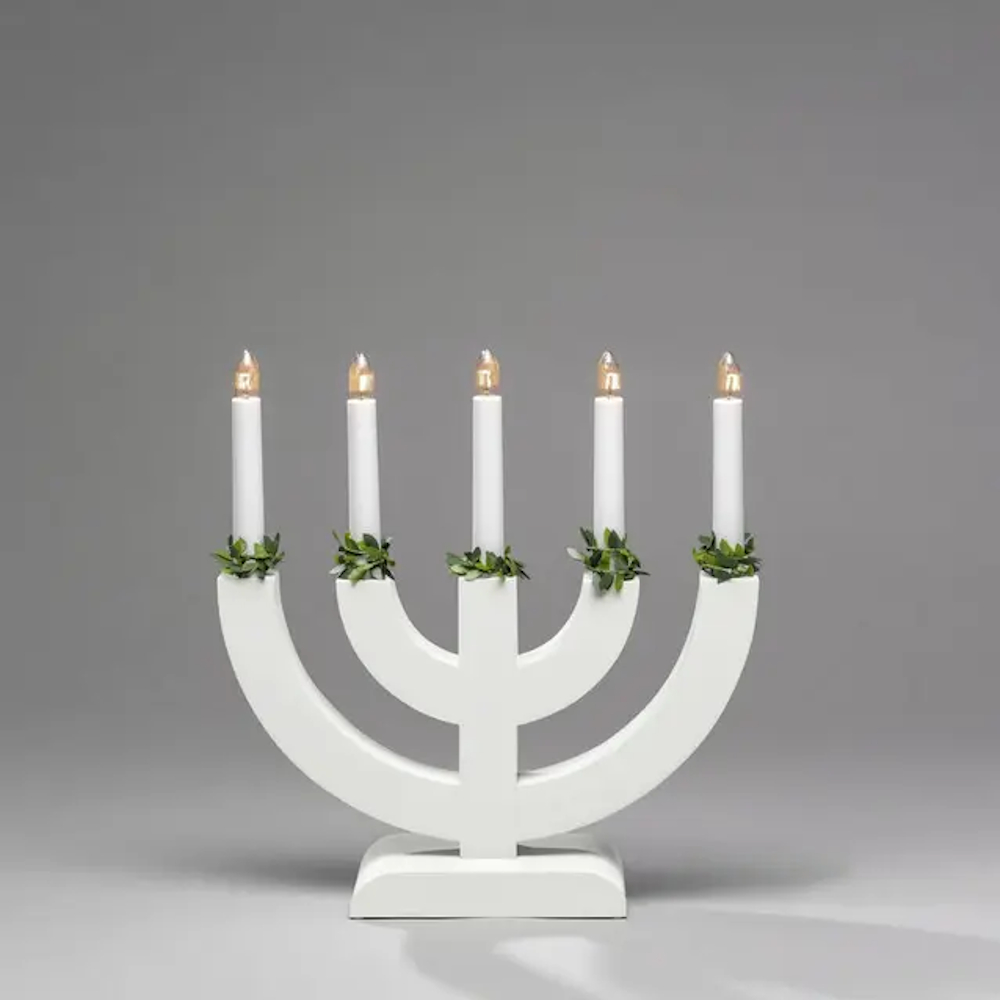 Lysestage 5 Lys Med Grønne Dekorationer E10 IP20 Træ Hvid Konstsmide