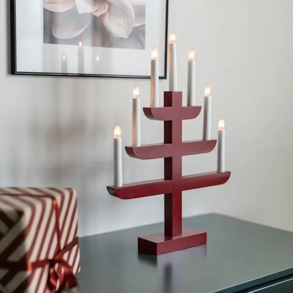 Lysestage 7 Lys E10 IP20 Træ Rød Konstsmide