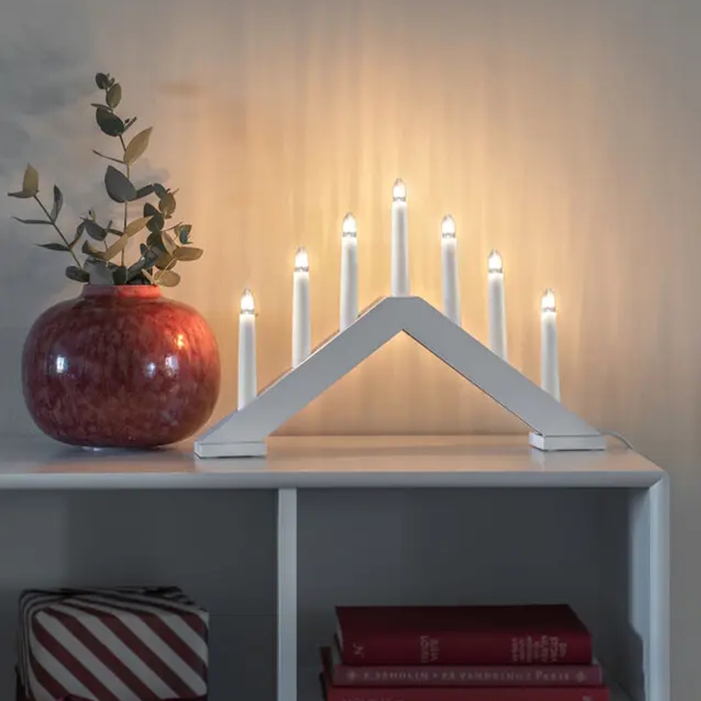 Stilfuld Adventsstage i lakeret træ, der skaber en varm og indbydende følelse i vintermørket. Med 7 lys og et klassisk design bliver den en tidløs julefavorit, der spreder lys og hygge år efter år.