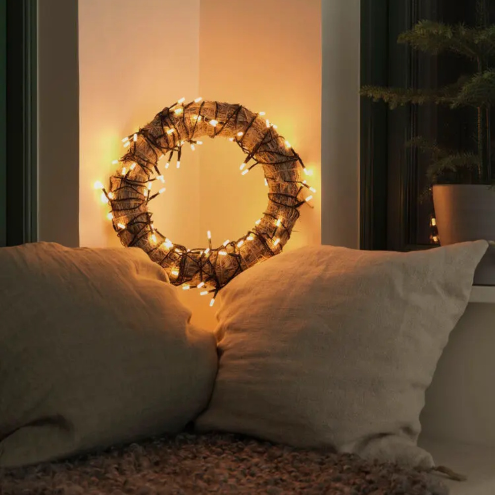 Lyskæde med 50 ravfarvede LED'er skaber en magisk atmosfære i ethvert rum, drevet af en sikker 30V transformer. [Energiklass G]