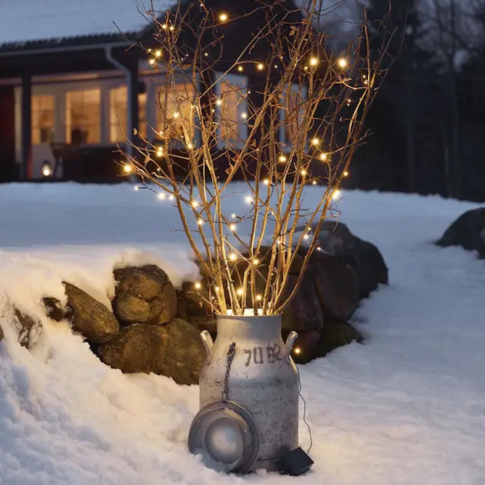Indret med 20 ravfarvede LED-lys, der giver et stemningsfuldt skær i haven, på altanen eller terrassen.