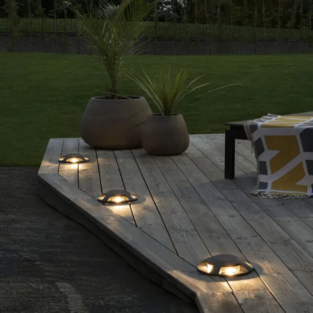 Denne jordspotlight er en påbygningsmonteret væg- og terrasselampe lavet af antracitgråt aluminium med IP65 beskyttelsesklasse. Lampen har firesidet lysfordeling og udsender et varmt hvidt lys på 3000K med 12W integreret LED svarende til 980 Lumen. Nem at installere med 230V.