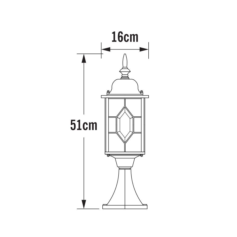 Milano stolpelampe i sort- og sølvlakeret aluminium med frostet blyholdigt glas. Gammeldags stil med smukke detaljer, der fremhæver havens karakter. E27-fatning. Stolpe medfølger. Lyskilde medfølger ikke.