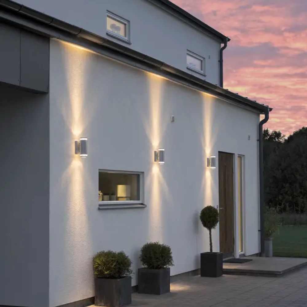 Modena facadebelysning i galvaniseret stål med klart glas og detaljer i akrylglas. Modellen er trekantet med en afrundet form. En stilfuld havebelysning, hvor lyset er rettet opad og nedad for et effektivt lysbillede. GU10-fatning. Lyskilde medfølger ikke.