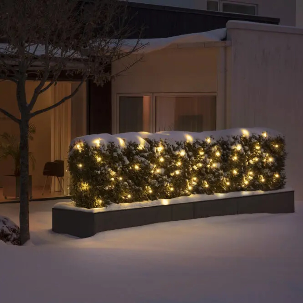 Lysnet på 3x3 meter med 96 varmhvide LED-lys. Lysnettet er tilpasset til udendørs brug og er nemt at bruge og opbevare. En ekstra lang tilslutningsledning på 10 meter for nem tilslutning.