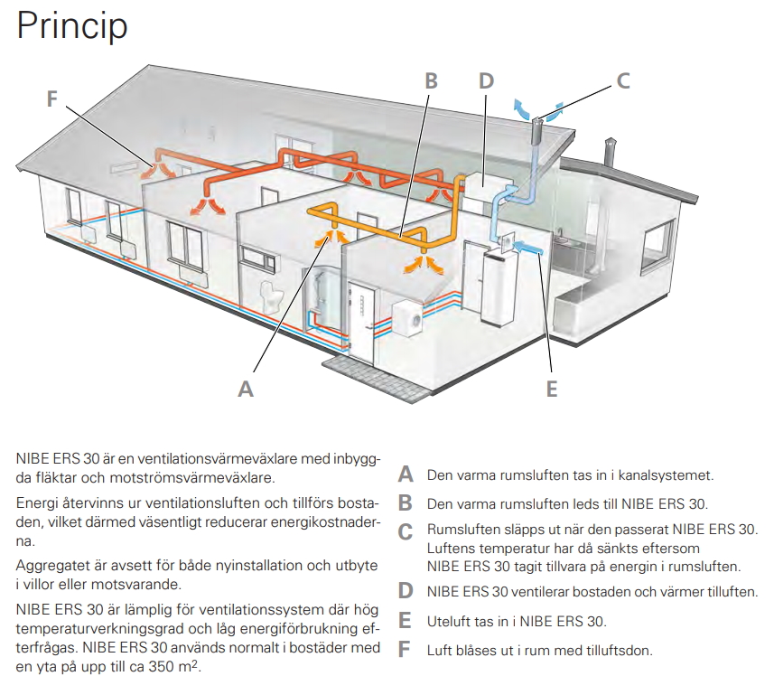 • Ger tillsammans med NIBE bergvärme eller luft/vatten-värmepump en komplett lösning i hus med balanserad ventilation.