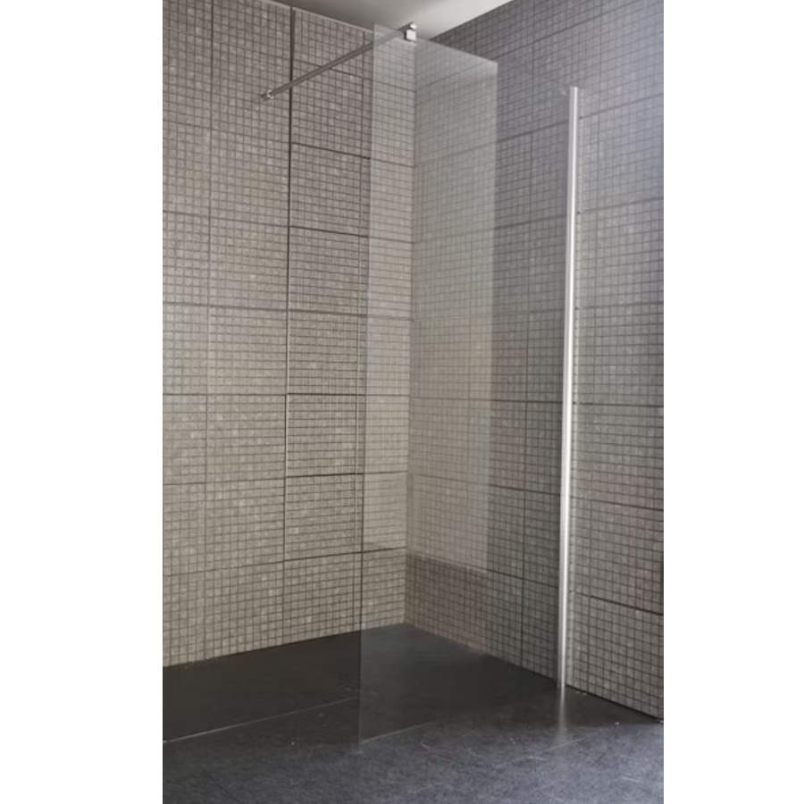 Duschvägg Riihijärvi i storlek 90x190cm för avskiljning mellan duchen och resten av badrummet. Duschväggen har 5mm säkerhetsglas och en väggprofil som är mycket lättmonterad, gjord i förkromad aluminium.