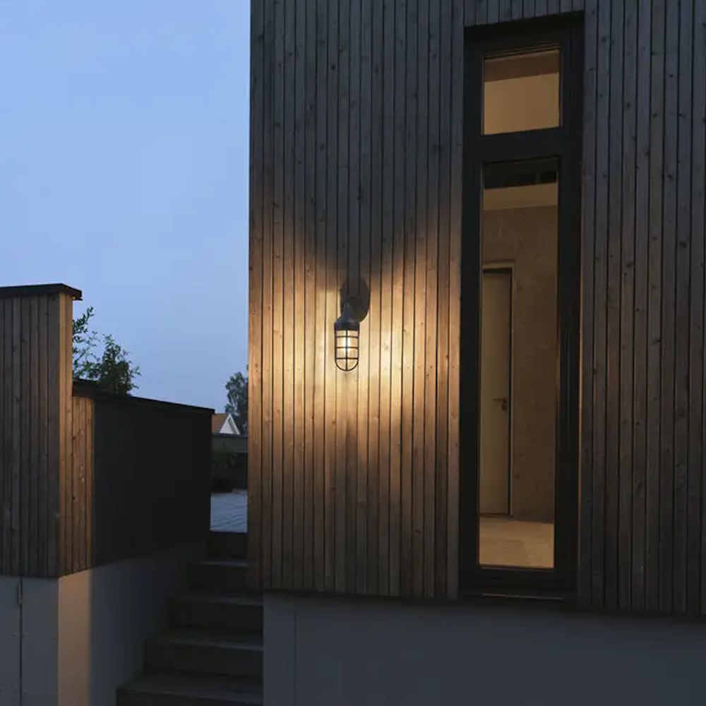 Olbia facadebelysning, i sortlakeret aluminium med klart glas, en elegant udendørsbelysning i industriel maritim stil.