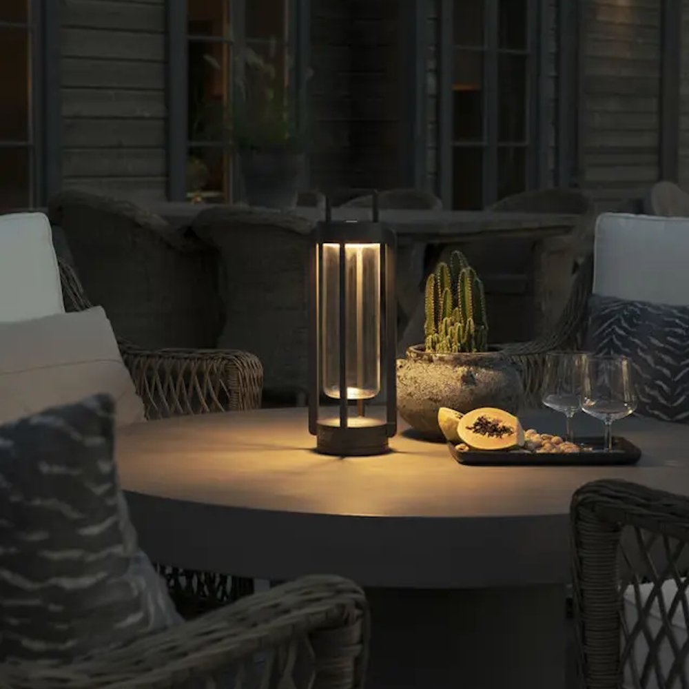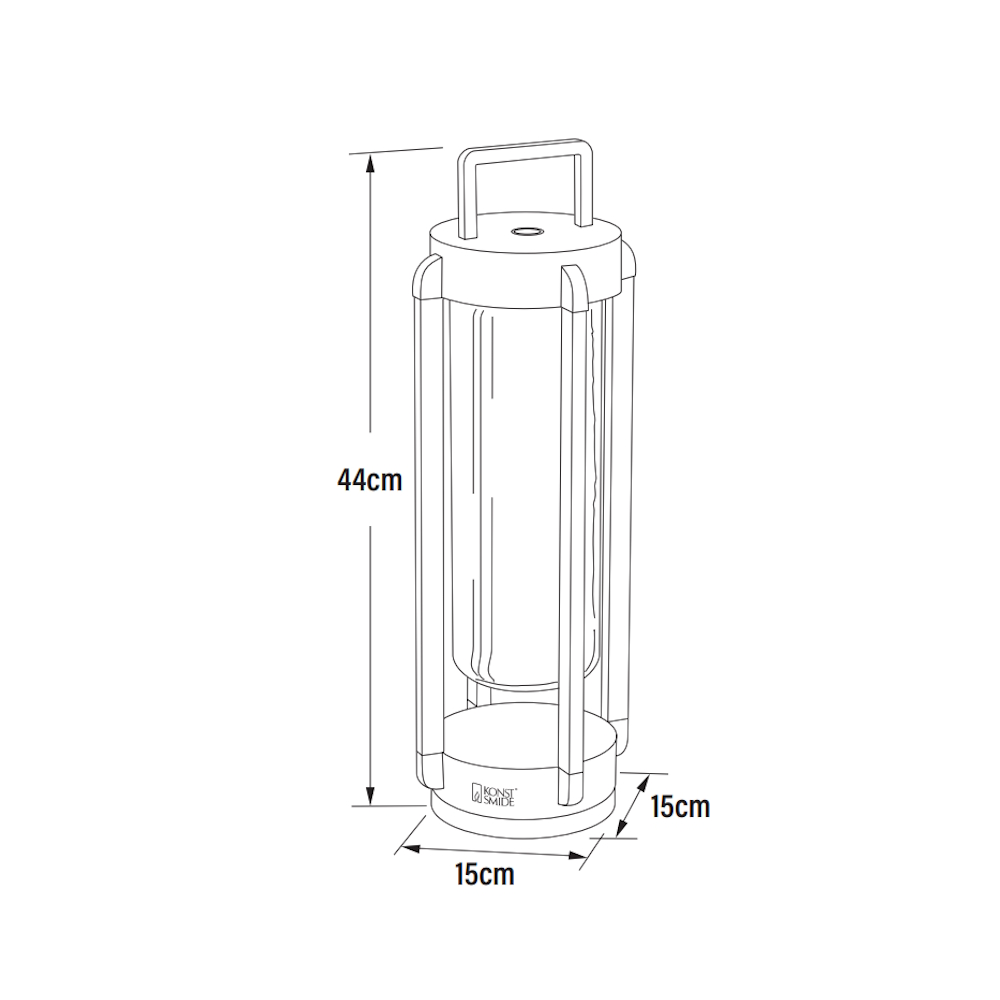 En praktisk, bærbar bordlampe fra Konstsmide. Lampen oplades nemt med et USB-kabel, hvilket gør den nem at tage med. Lampen er også dæmpbar, så du kan justere lyset efter din smag. Tænd blot lampen med tænd/sluk-knappen. Lanterna Konstsmide Otranto Sort USB 44cm er en stilfuld bordlampe med et åbent design og glasdekoration. Den oplades med USB og er dæmpbar (2700K/3000K).