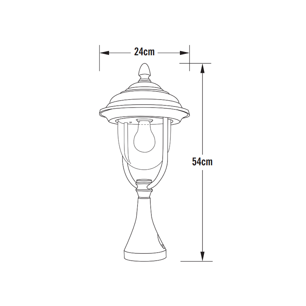 Parma stolpelampe i grønlakeret aluminium med klart glas, en klassisk, holdbar udendørsbelysning til haven, indkørslen eller indgangen. E27-fatning. Stolpe medfølger. Lyskilde medfølger ikke.