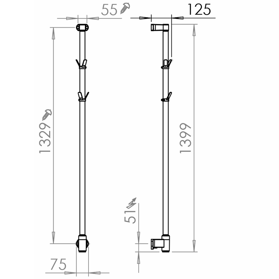Slimmad och diskret design i rostfritt (Ø50 x 1400 mm). Manuell eller appstyrd Momento II-timer. Effekt 24W.