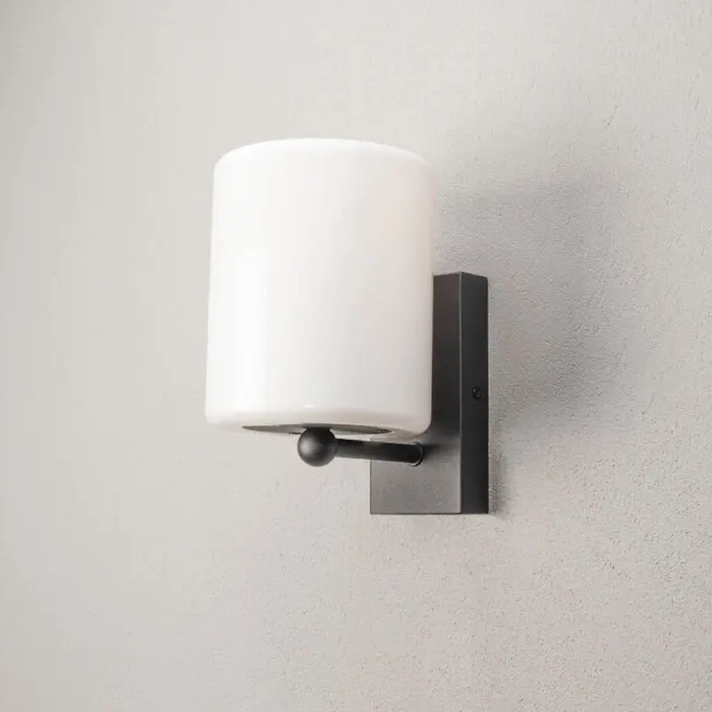 Portici facadebelysning med en smuk, opalfarvet skærm og beslag i sortlakeret stål. Giver din entré en imødekommende følelse.
