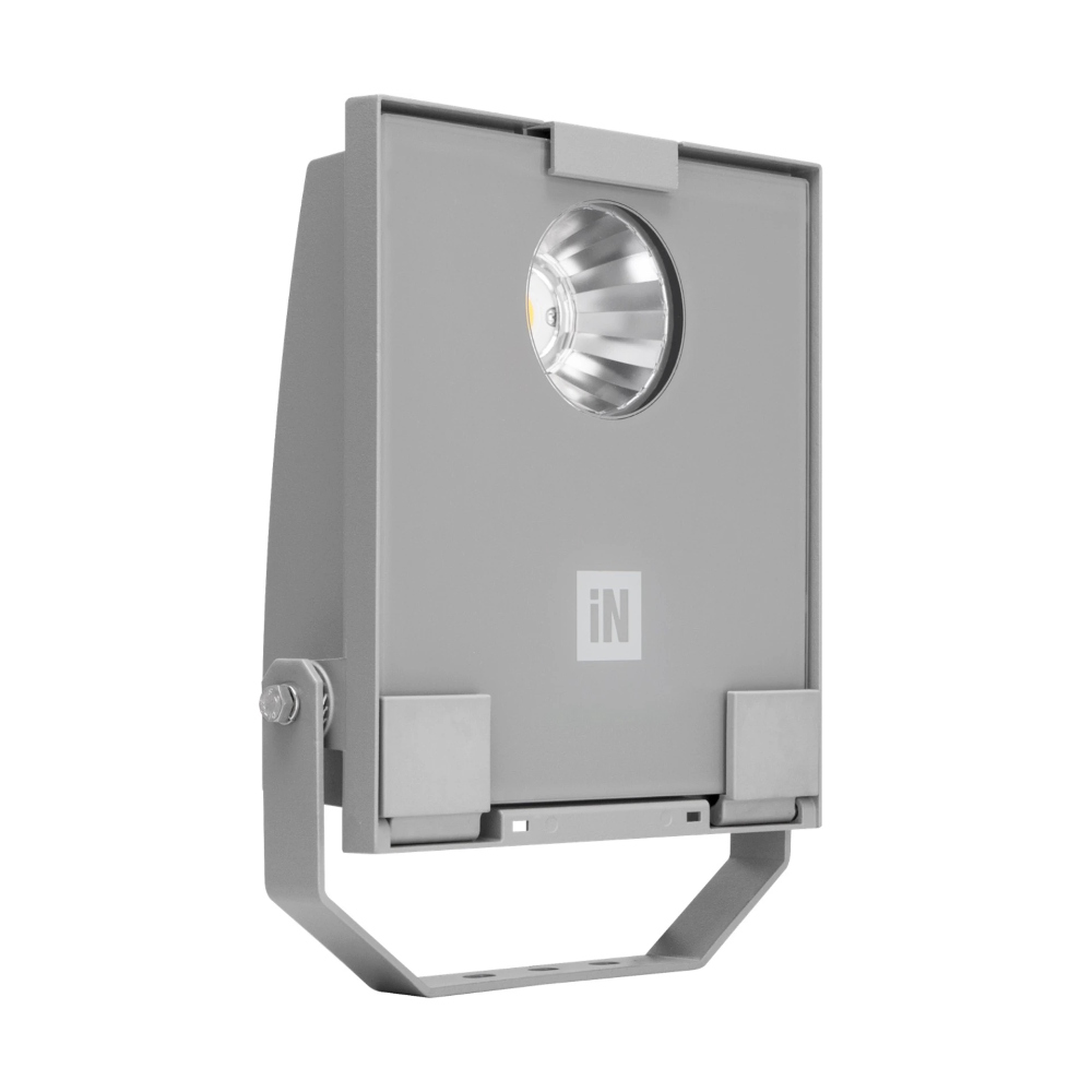 Gråt hus i trykstøbt aluminium, hærdet fladglas, aluminiumsklips, optik i ren aluminium, cirkulært lysmønster 20° reflektor.
