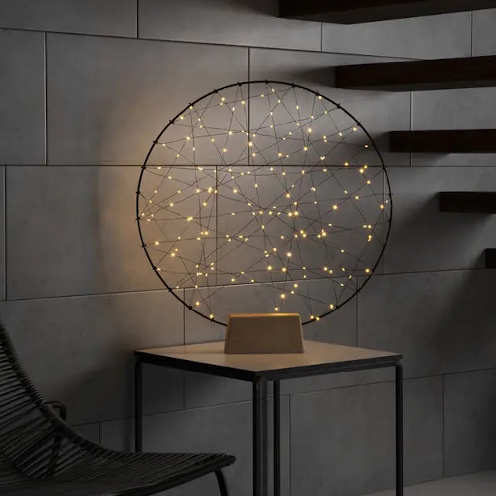 Rund Metaldekoration Træbase 160 Ravfarvede LED IP20 Sort Konstsmide
