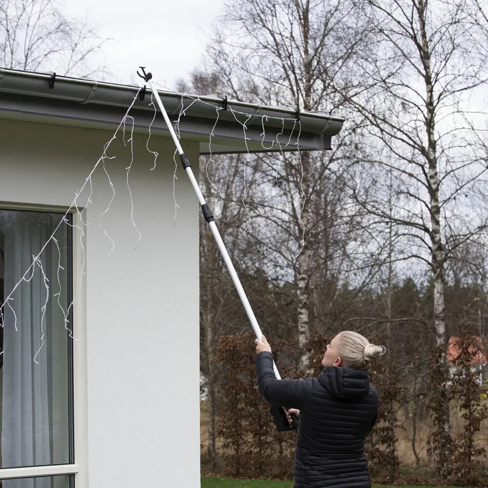 Et teleskoprør til ophængning af lyskæder. Produktet er IP44-klassificeret til udendørs brug og gør det nemt at fastgøre og håndtere lyskæder.