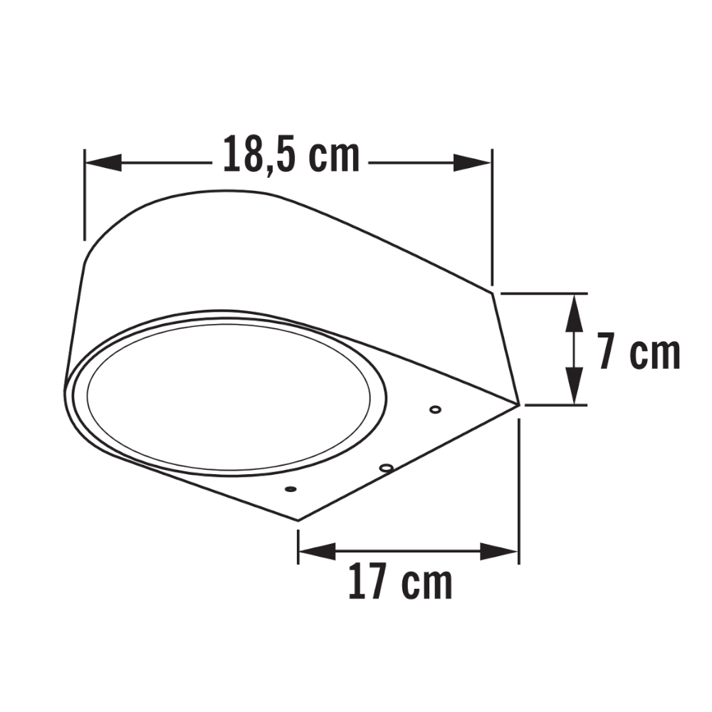 Teramo, minimalistisk facadebelysning designet til at sprede lys både opad og nedad. Sortlakeret aluminium med frostet glas. E27 fatning maks. 40W. Højde 7 cm, bredde 17 cm og dybde 18,5 cm.