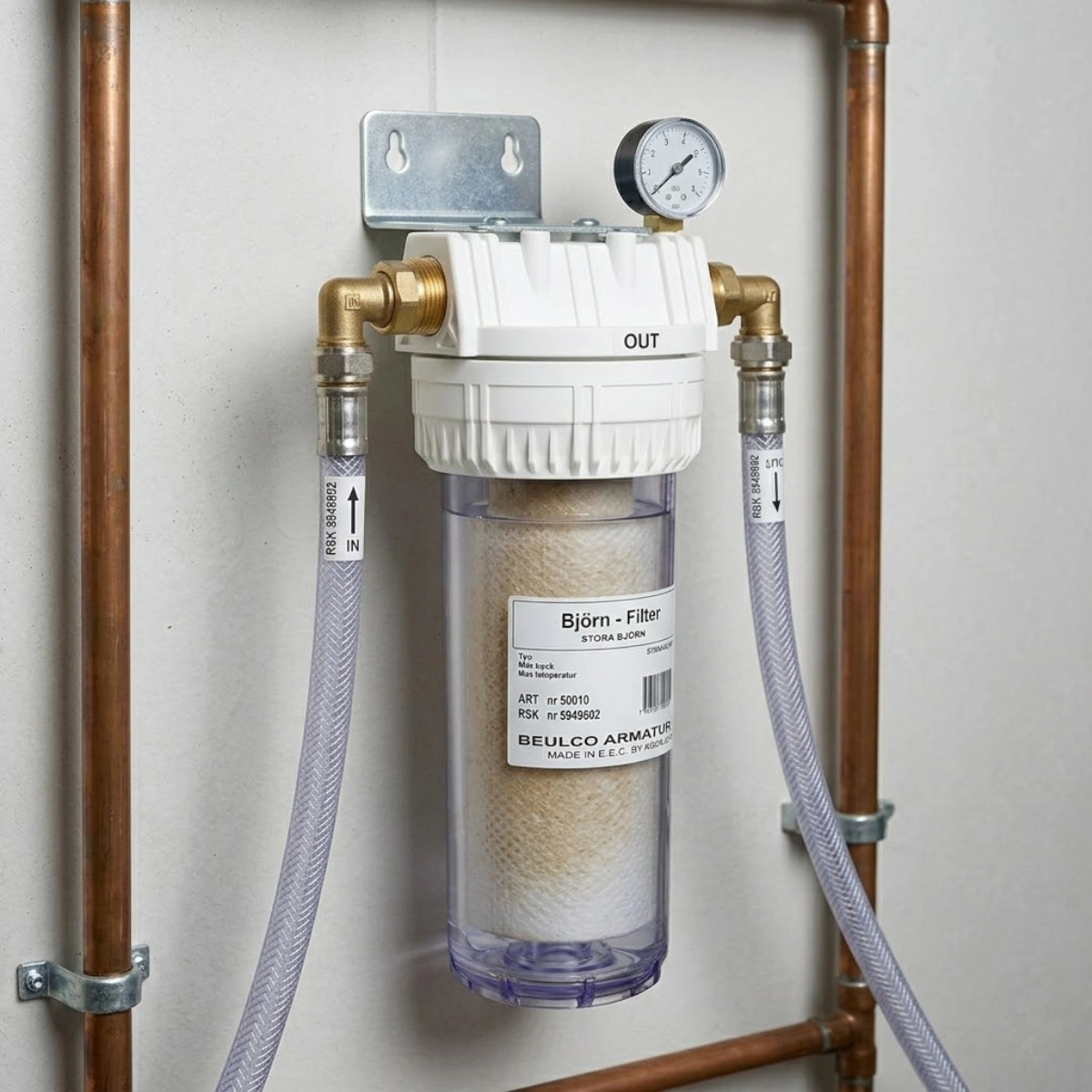 Filterbeholder Stora Björn G25 er en robust og pålidelig løsning til effektiv vandrensning, designet til at rumme standardpatroner på 9 3/4 tommer. Denne alsidige beholder er fremstillet i plast af høj kvalitet og er konstrueret til at håndtere et arbejdstryk på op til 8 bar samt vandtemperaturer op til +50°C. Produktet leveres komplet med en praktisk filternøgle, som forenkler fremtidig vedligeholdelse og udskiftning af patroner, hvilket gør den til et fremragende valg til både private husholdninger og mindre kommercielle installationer. Med sit kompakte design og G25-tilslutning tilbyder den en holdbar og installationsvenlig metode til at beskytte rørsystemer og tilsluttet udstyr mod uønskede partikler og forureninger (bemærk venligst, at filterpatron sælges separat).