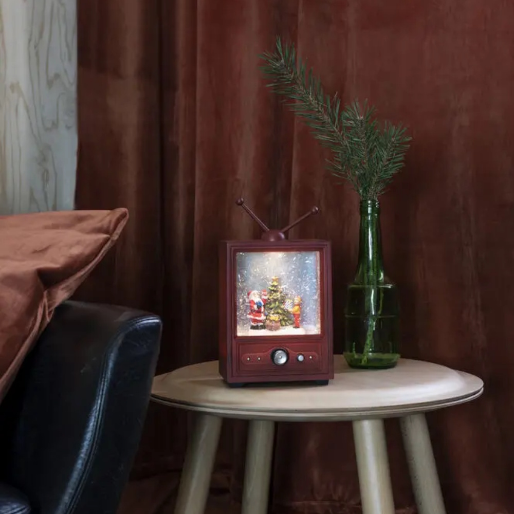 Vandfyldt Lanterne-TV Med Dreng Og Grantræ LED IP20 Brun Konstsmide