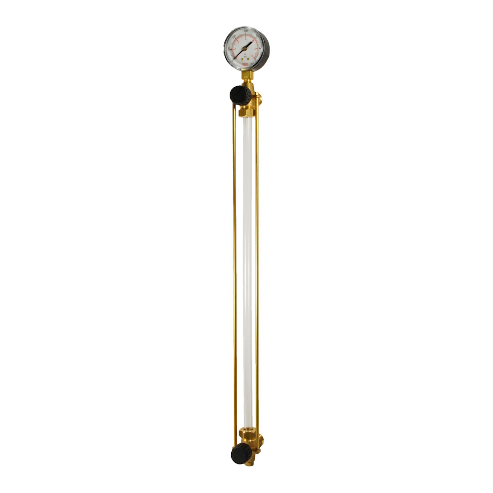 BA water level complete with pressure gauge 63mm 0-6bar with connection downwards 1/4", 1 pair of under-over valve in brass and 1 PVC pipe and 2 brass protection bars.