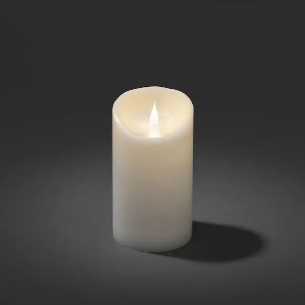 Vokslys i LED. Dette smukke bloklys i voks har en 3D-flamme, der skinner i et hyggeligt varmt hvidt lys.