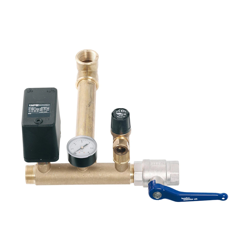 6-way cross valve pipe with G25 external thread, brass body and PN 10 pressure class.