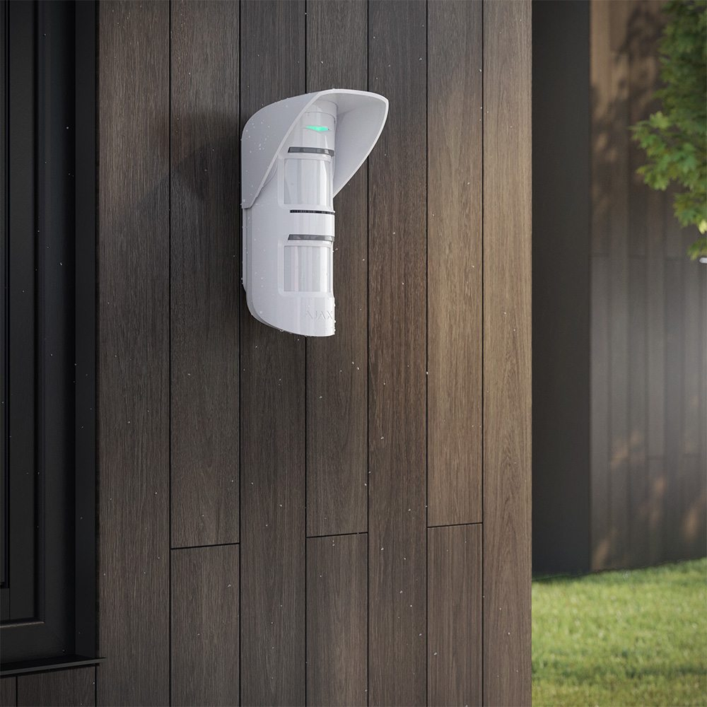 Wireless outdoor motion detector designed to protect outdoor areas around your home, garden, entrance or other areas by detecting movement with infrared sensors. It connects securely to your Ajax security system via the encrypted Jeweller protocol and can communicate with the hub up to approx. 1,700 m in open area. MotionProtect Outdoor features anti-masking, sabotage/tamper protection and immunity to small animals (up to approx. 80 cm tall when properly installed), which helps reduce false alarms even in harsh outdoor environments. The detector is weatherproof with an IP55 rating and can operate in temperatures from approx. –25 °C to +60 °C.