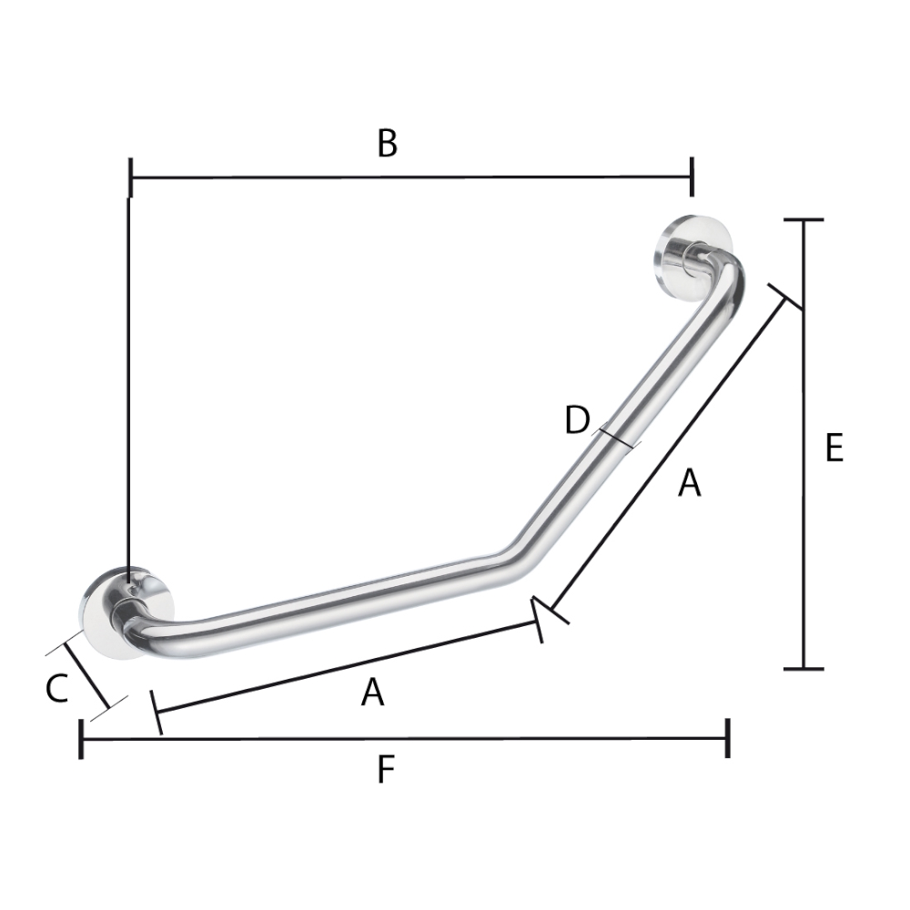 Living bathtub handle. Long curved model V-shaped 135°. Total length 500mm. Max load 150kg applies to this product.