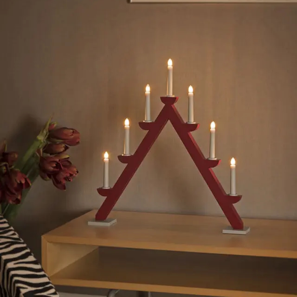 Candlestick 7 Candles With Grey Rings E10 IP20 Wood Red Konstsmide